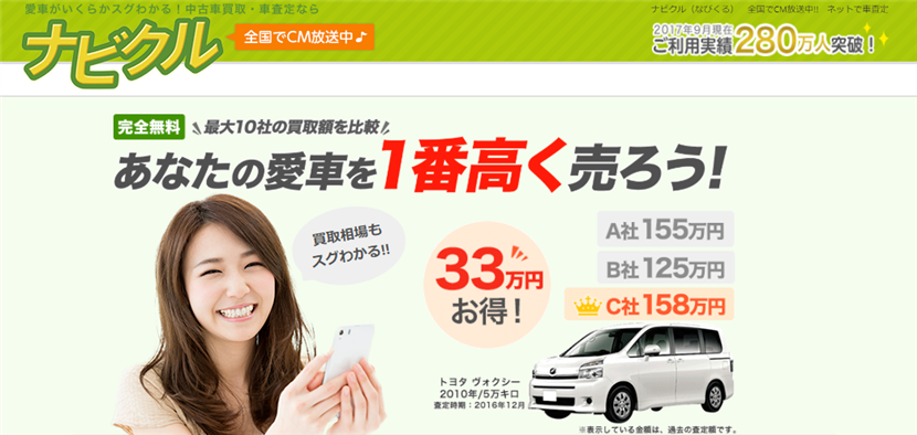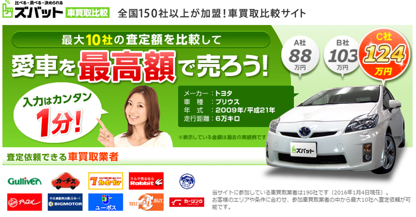 車買取一括査定サイト中でも提携している業者の数が多く、全国に150社以上と提携しています。